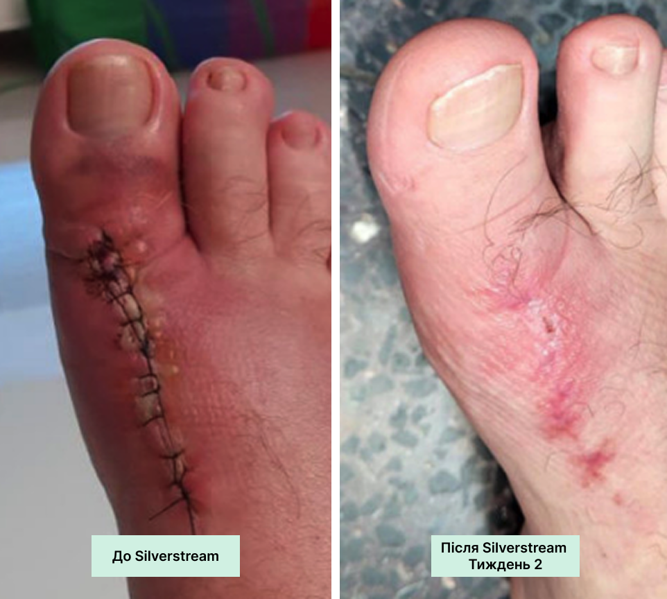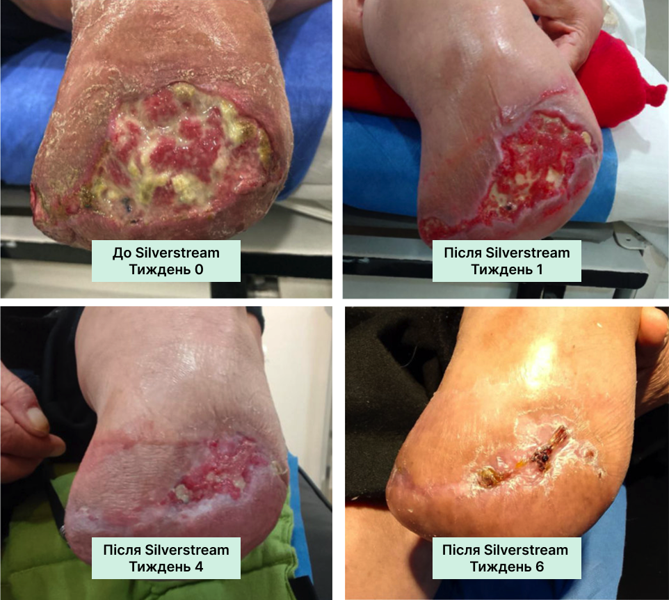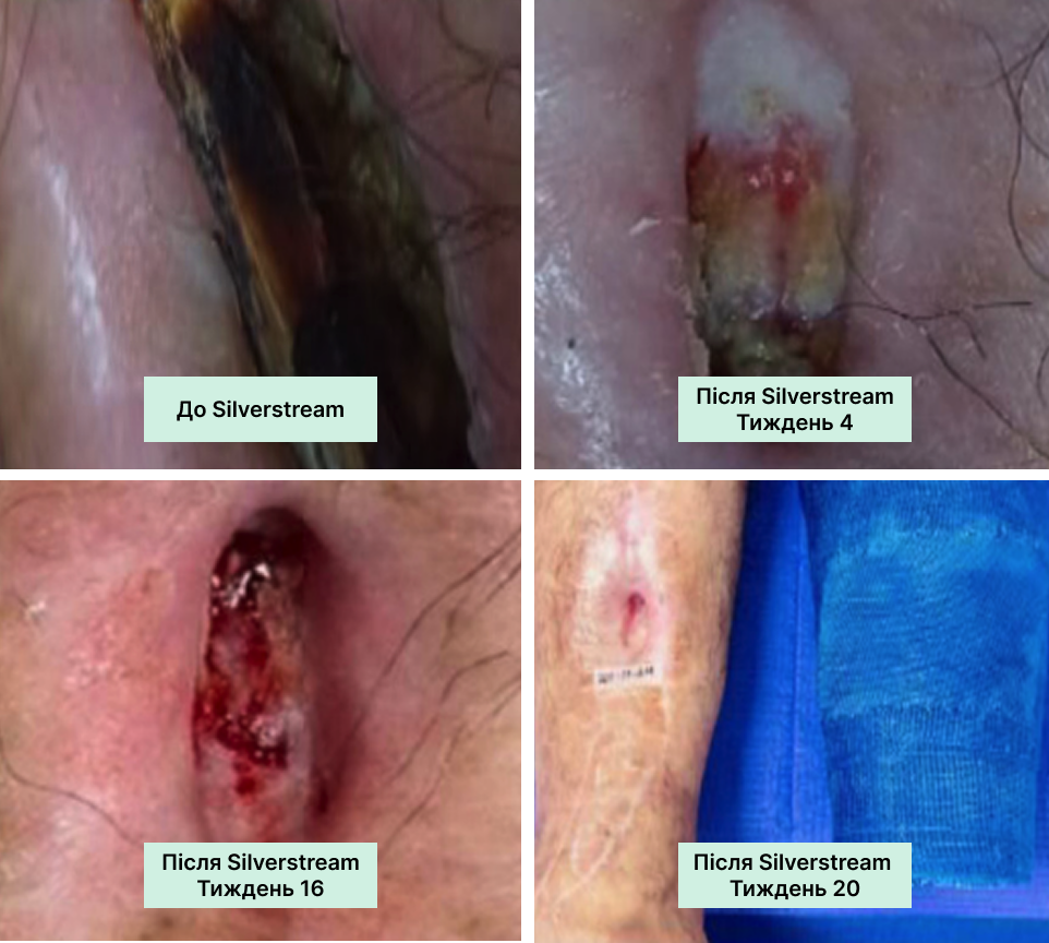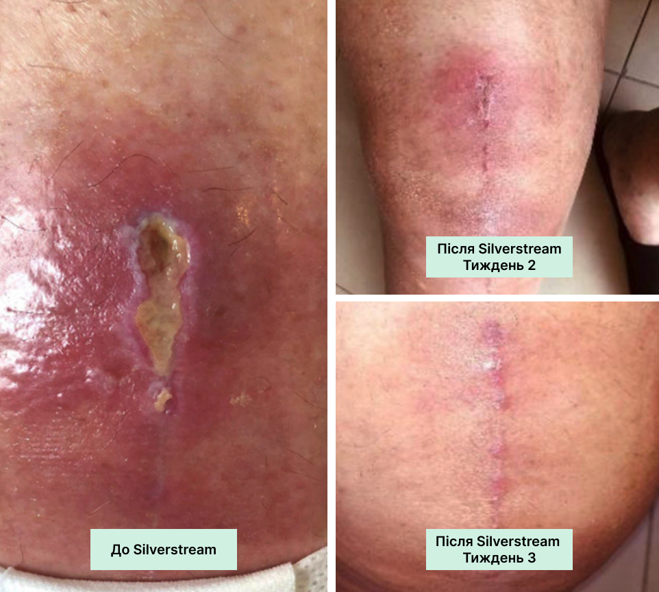 • Пацієнтку виписано на пероральних антибіотиках із рекомендацією догляду за раною вдома за допомогою SilverStream
